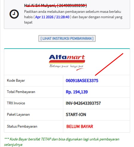 kasih kode bayar ke alfa atau indo mart yang di pilih